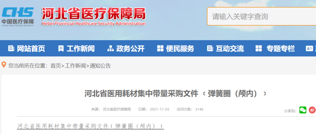 11月3日,河北省医保局发布《河北省医用耗材集中带量采购文件﹝弹簧圈(颅内)﹞》,明确自11月6日起,企业开始申报参加此次带量采购。这也预示着新一轮的神经介入类耗材集采拉开帷幕。